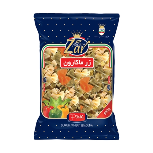 ماکارونی پروانه ای سبزیجات زر ماکارون مقدار 500 گرم