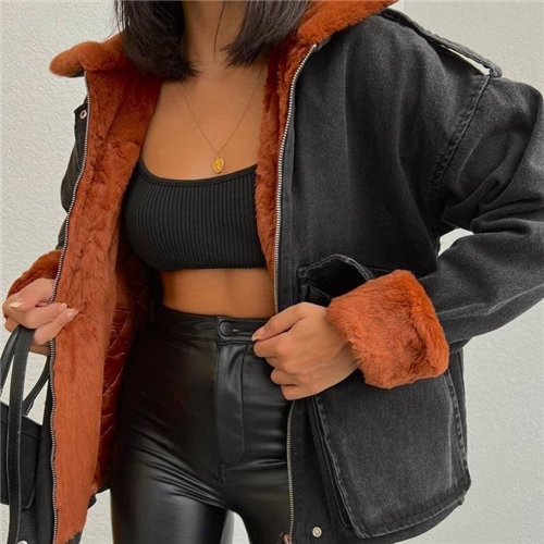 کت جین زیپی تو خزدار زنانه