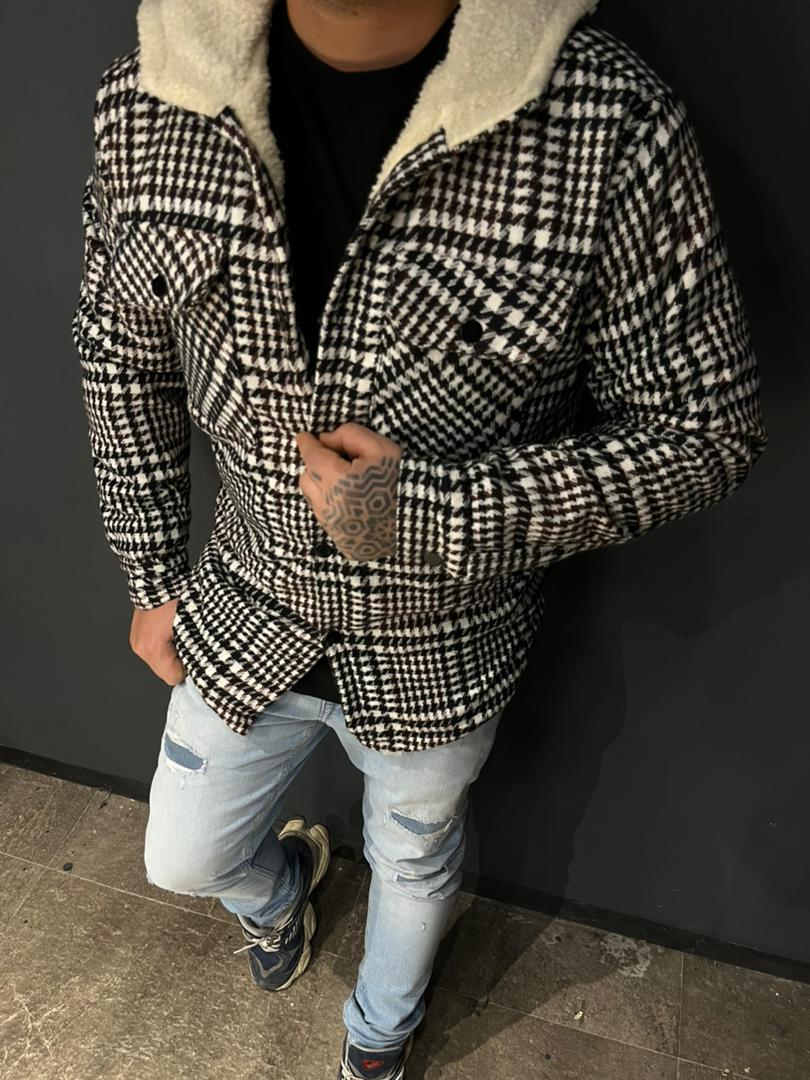 سویشرت پشمی چهارخونه مردانه داخل بره ای